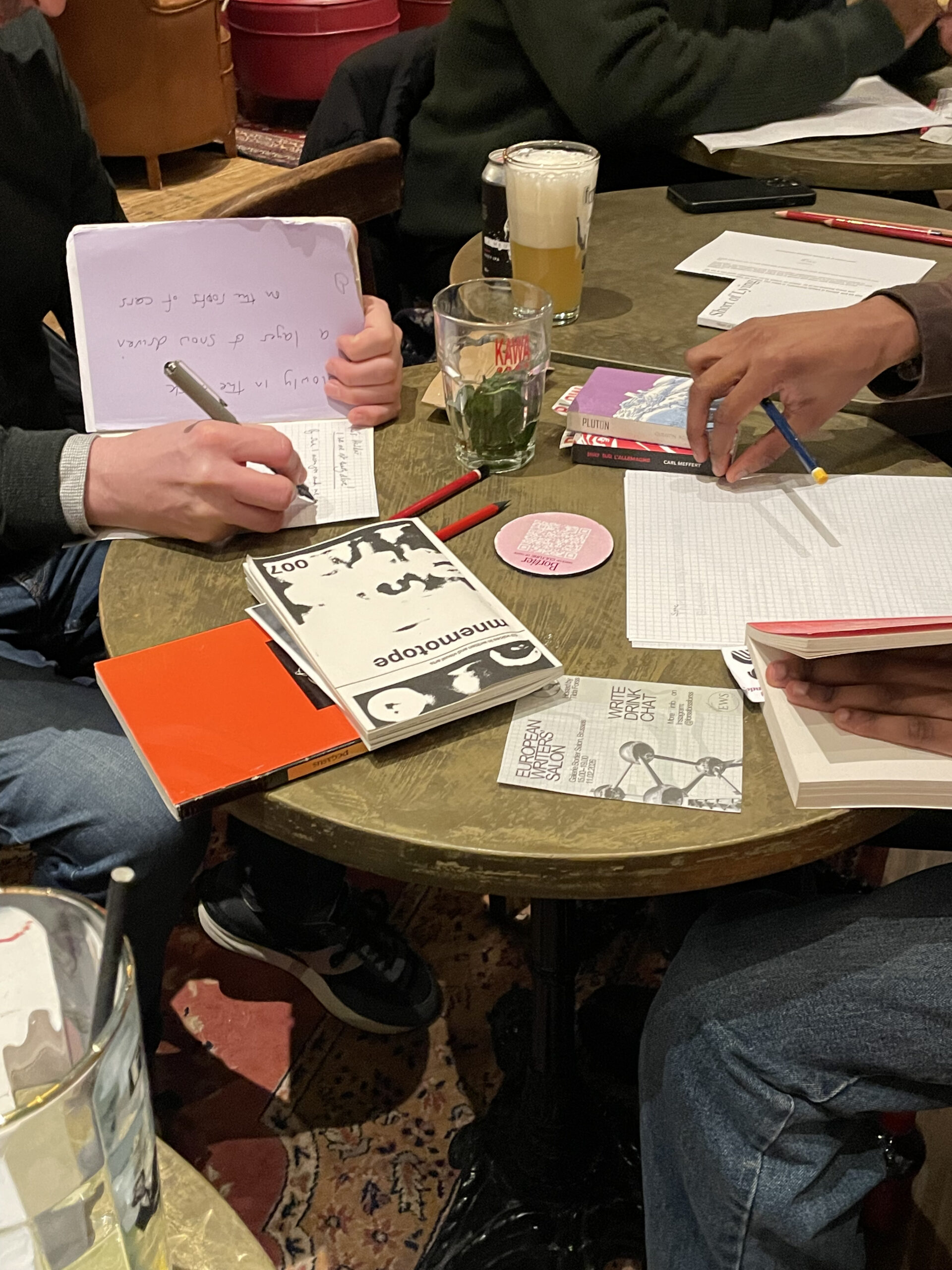 Not all of Brussels’ writing communities are rooted in a single neighbourhood or institution – some operate on a larger scale entirely. The European Writers’ Salon is a travelling literary salon whose mission is connecting writers across Europe through online events, pop-up salons in different cities, and an annual gathering that combines open mics, readings, workshops, and panels. Earlier this year, I co-hosted a writing workshop with them at Galerie Bortier to mark their second anniversary, which is the kind of event they do well: low-threshold, genuinely cross-border, and centred on the writing itself. Their next online open mic is today on the 15th of April, free and open to all, booking available via Eventbrite. They also run paid online workshops; the ongoing series, led by writer Mark Bowles, explores writing that resists language across four sessions. More information and upcoming events at saloneurope.org.